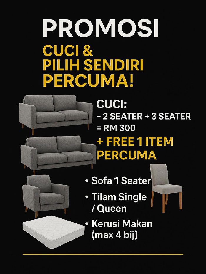Semua Cucian Lembut – Sofa, Kusyen, Tilam, Pejabat – siap dalam satu tempat.